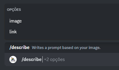 Digite “/describe" e aparecem duas opções: "image" e "link".