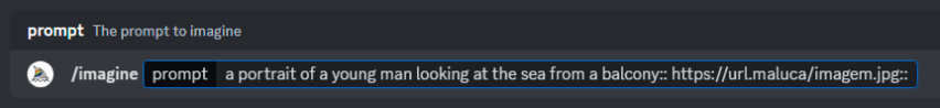 O parâmetro “−−iw” define o peso (importância) da imagem externa (URL) em comparação com o peso do texto do prompt. Quanto maior o valor do “−−iw”, maior é o “impacto” da imagem enviada nas imagens geradas.